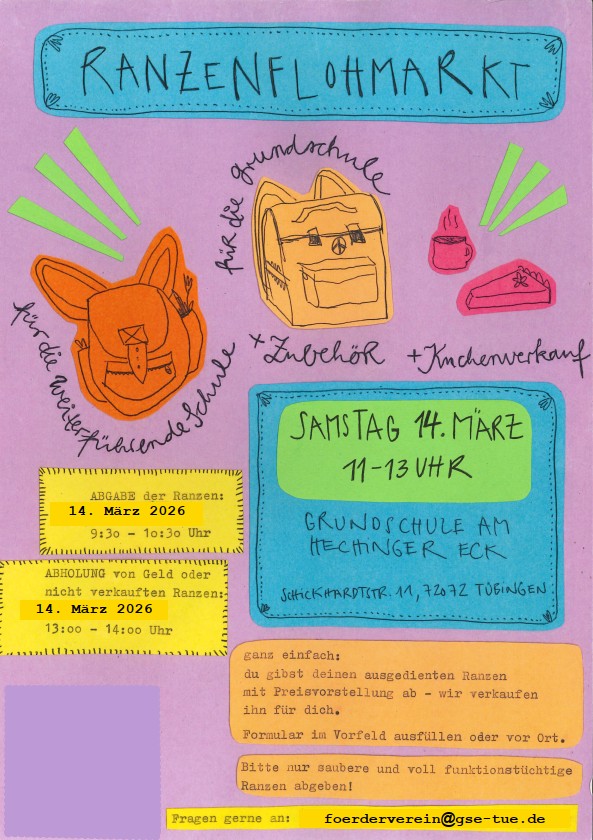 Ranzenflohmarkt im Tübinger Süden! 20. Februar 2025 Anmeldeformular Ranzenflohmarkt 2026Herunterladen